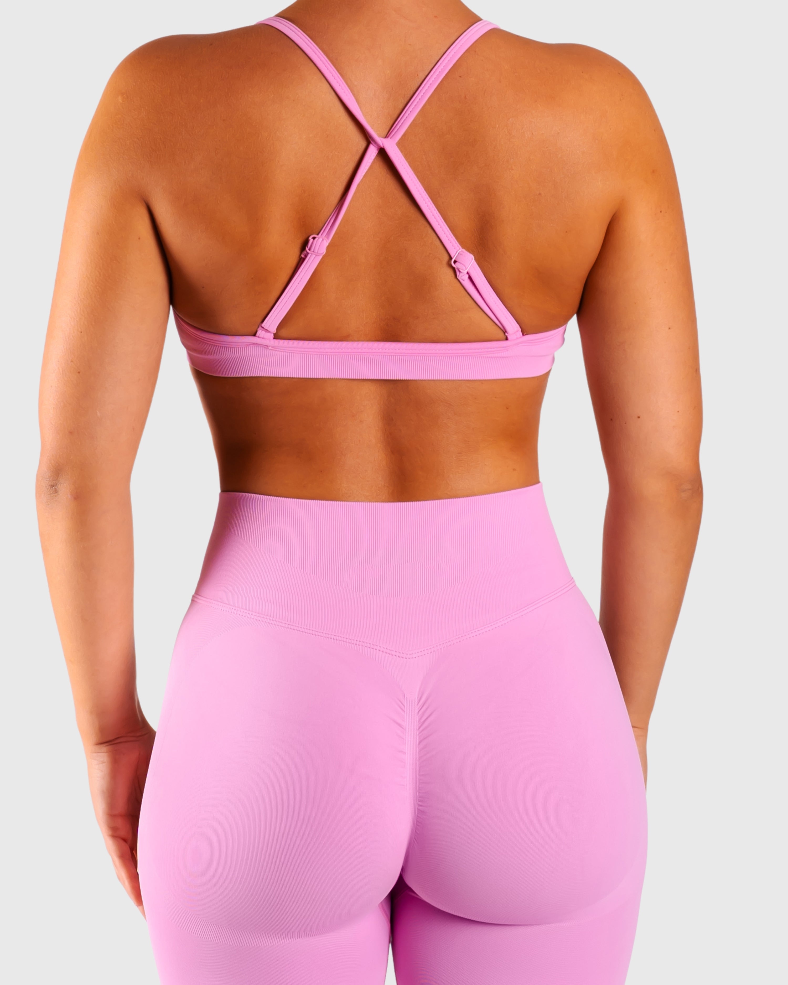 Vivid sports-BH er designet for både stil og funksjon. Den har en scrunch-detalj foran som skaper en flatterende V-formet utringning som fremhever brystområdet.