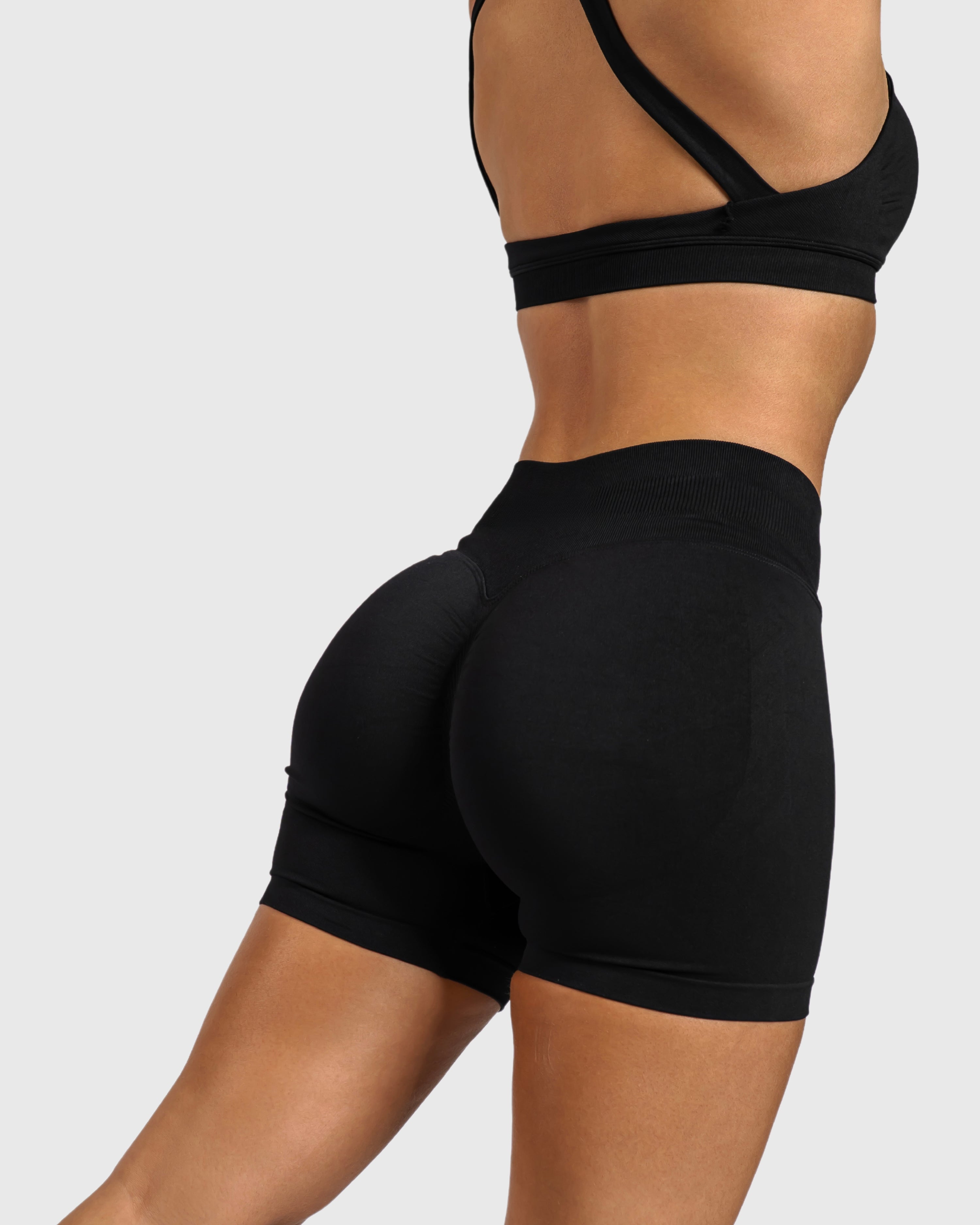 Korte, men kraftfulle. Essence Shorts er designet for å gi maksimal shaping-effekt, samtidig som de føles komfortable og bevegelige. Den stramme passformen og markerte scrunchen skaper en flatterende look, perfekt både til trening og en sporty hverdagsstil.