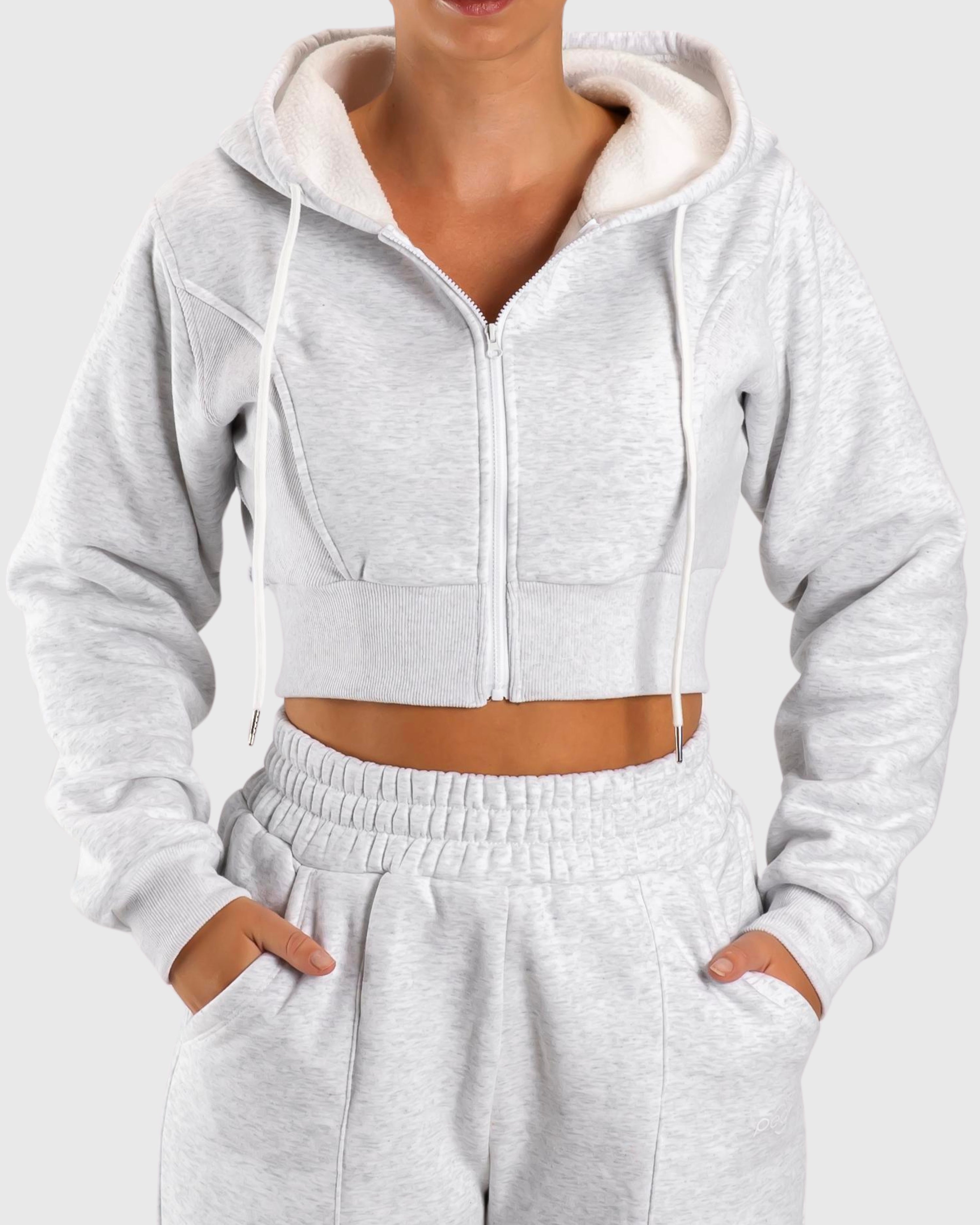 Light Grey Vibe Cropped Hoodie