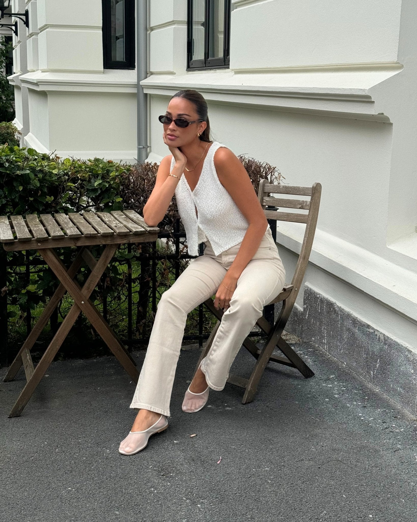 Beige utsvängda jeans