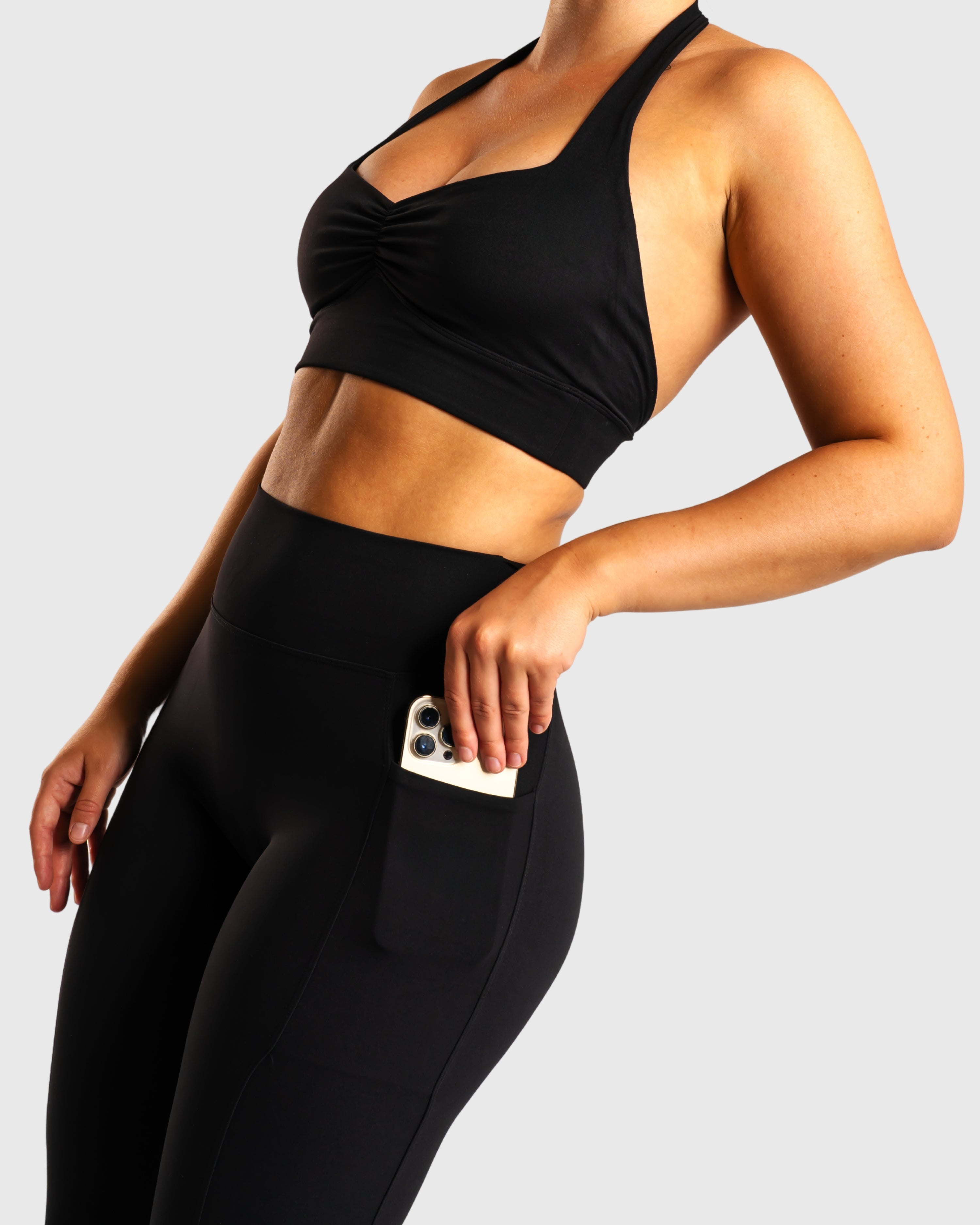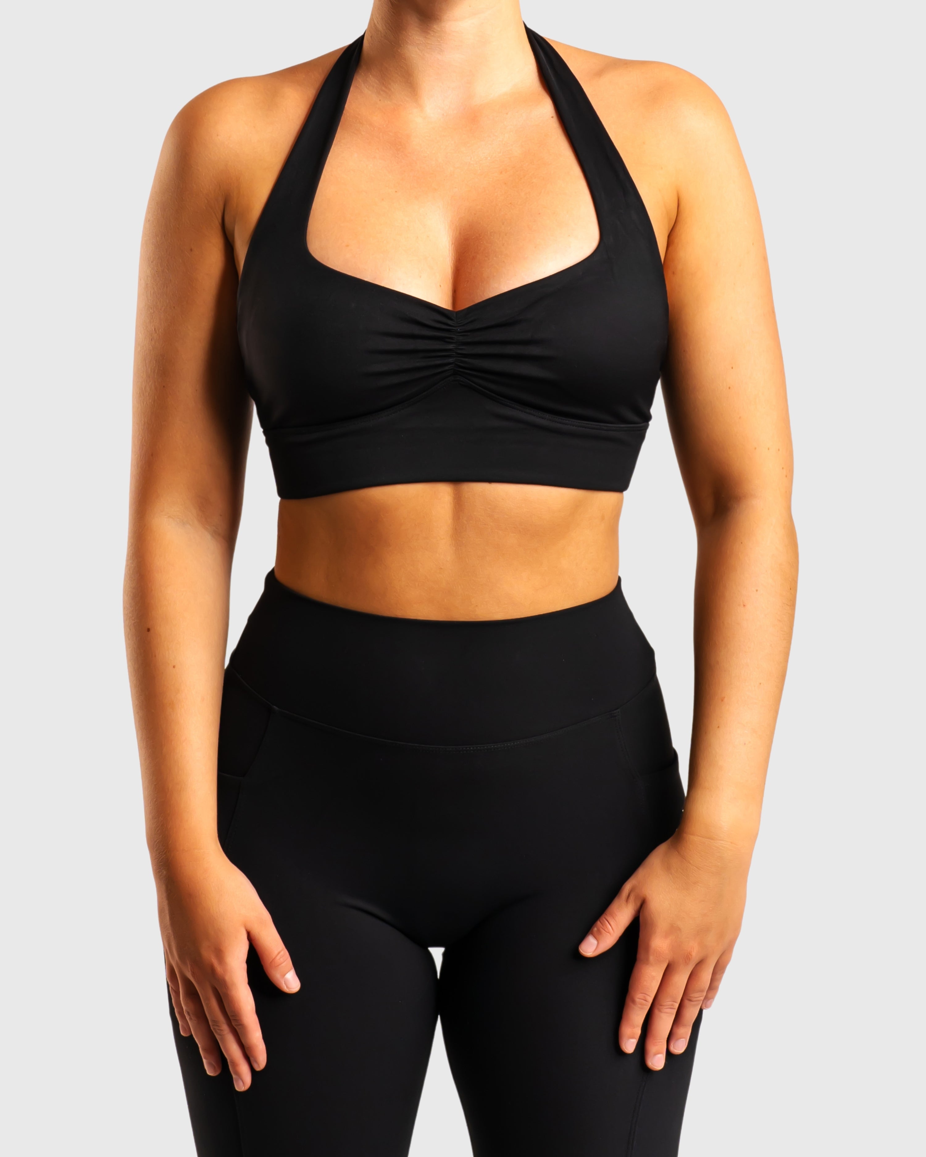 Upplev den perfekta kombinationen av stil och stöd med vår Pulse sports-BH. Denna halterneck-BH har öppen rygg, och framtill har den en subtil hjärtformad design med en delikat scrunch-detalj.